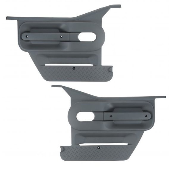 Some Jeep owners with factory full steel doors wish they had steel half doors for the "top down" season. Now with the MOPAR half doors you can have the best of both worlds. Front Half Door Kits are sold as a pair and come primed. Half Door Kits come complete including Trim Panels, Codeable Lock Cylinders, Wiring & Linkage. Mirrors are sold separately.