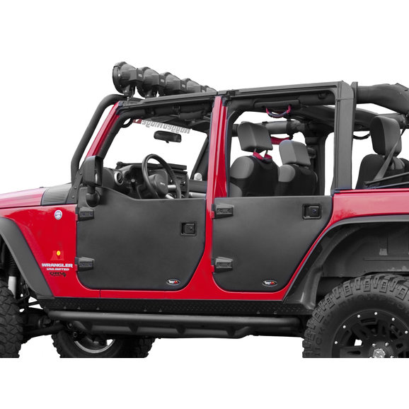 The new Rugged Ridge® Half Door option every JK owner has been looking for! These new half doors provide open air excitement and freedom along with added functionality and convenience. High quality features and performance makes them a winning combination. The strong and durable design is built to last and features a paintable impact resistant thick plastic outer shell that is virtually dent proof. The outer and inner shells attach to enclose an internal powder coated tubular steel door frame that provides maximum structure and support. The do it yourself Half Doors Interchange quickly with the factory steel doors and no drilling or modifications required. Each door features lockable door handles, an internal storage pouch, weather proof door seals, OE style cast steel hinges. Upper half doors sold separately.