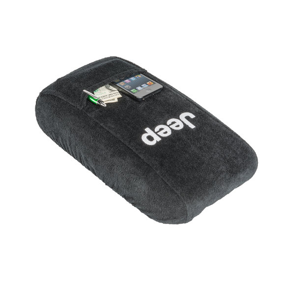 Add comfort to your ride with a cool and soft cotton velour cover for your center console lid. The scorching hot summer sun can heat console lids to annoyingly hot temperatures. Our covers install in seconds with a custom form fit that stays in place with elastic banding. Features include embroidered Jeep logo and handy storage pocket. Easily removable and is machine washable.
