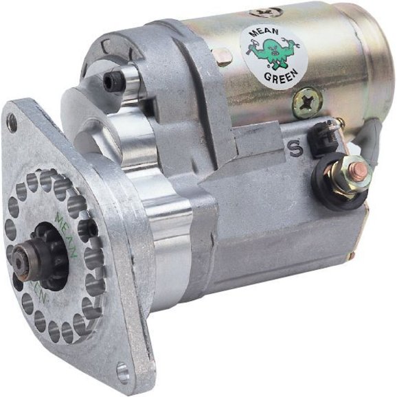 Mean Green Starters are 1/3 smaller in size and weight than stock starters. The rotating billet aluminum nose cone versions can be rotated in 20-degree increments to allow for better header clearance & protection from the heat. Provides 35,000 trouble-free torque filled starts compared to the average of 5,000 starts per stock unit. Amperage draw is less than a stock starter. Features heavy-duty construction and provides extreme performance and reliability with a total of 5 sealed ball bearings to keep out water. Stainless steel main shafts provide direct line engagement.