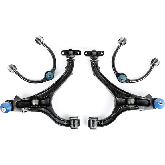 This front control arm kit comes complete with two front upper and two front lower control arms. Set is a direct factory fit replacement and comes with their 5 year limited warranty.