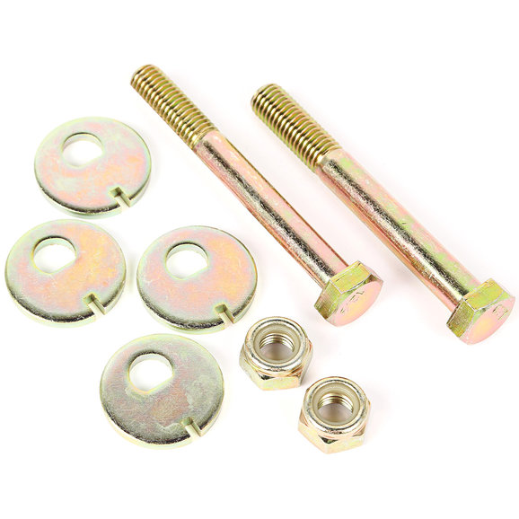 Get the most out of your alignment with this "must-have" front lower control arm cam bolt set from Rugged Ridge. The kit includes 2 cam bolts, 4 adjusting washers, and two nuts, everything you need to regain proper alignment. Perfect for lifted vehicles that wish to achieve optimal alignment settings.