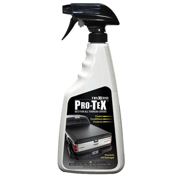 Keep your tonneau cover looking brand new with Pro-Tex spray by Truxedo®. This spray on and wipe dry protectant will extend the life of your tonneau cover and also works great for tires, dash, trim and convertible tops. Pro-Tex spray is water based and does not contain any damaging silicones.