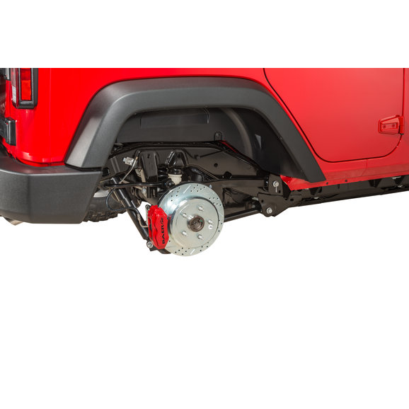 This system features the S4 4-piston caliper mounted to a 12.2" 1 piece (stock size) slot, drill, zinc plated rotor. This system is designed to reuse the factory Jeep park brake assembly, and comes with Baer's unique Verislide brackets to allow the 4 piston caliper to float with the stock C-clip axles.