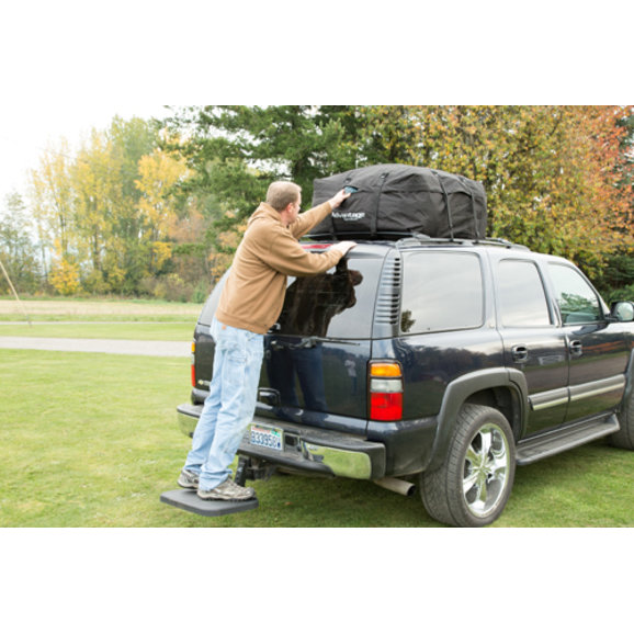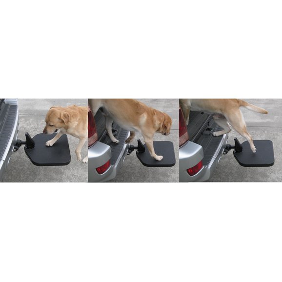 TWISTEP® is an instant, multi-use step that helps your dog get in and out of your Pickup Truck easily. It attaches to the hitch receiver of your vehicle and stores under the bumper when not in use. TWISTEP® provides your pet with lower-impact, lower-stress access into and out of a vehicle. Repeated jumping into and out of a vehicle can aggravate or even cause serious conditions like arthritis, leg injuries, back sprains and other spinal damage. And lifting a large dog into a vehicle isn't easy! TWISTEP® can help dogs of all ages get into a vehicle. Young dogs can avoid unnecessary stress on growing hips and elbows. Active dogs can appreciate a step up at the end of a long day of hiking, hunting and other outdoor activities. And TWISTEP® can help older dogs, who may suffer from arthritis and who can no longer enter a vehicle on their own. TWISTEP® easily swivels out from under the vehicle in a few seconds just when you need it. And it tucks out of the way under the bumper when you don't. TWISTEP® fits trucks with a 2" receiver hitch.