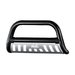 Westin's Ultimate Bull Bar is a front-end product that bring out the "off-road" personality in your vehicle. It is made of chrome plated stainless steel or black powder coated mild steel and are designed with a tube diameter of 3 inches for larger trucks and SUVs and 2.5 inches for smaller vehicles. The Ultimate Bull Bar includes a polished stainless steel skid plate that helps protect the vehicle's undercarriage and provides classic off-road style. The skid plate also features a laser-cut Westin signature logo. Ultimate Bull Bar applications are bolt-on and come complete with vehicle specific mounting kit.