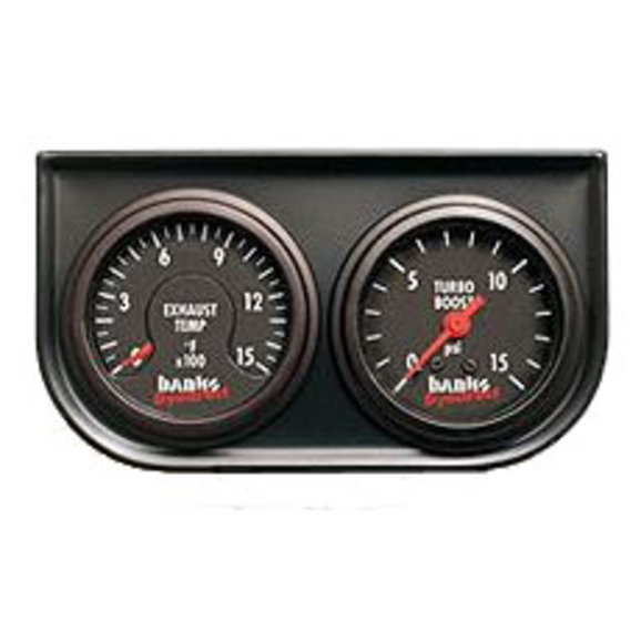 Superior precision and durability are hallmarks of Banks DynaFact gauges. The pyrometer provides exhaust gas temperature (EGT) measurements that are accurate within ±15° F at maximum operating temperatures. Its spring-loaded jeweled movement is resistant to vibration and sports a lit, easy-to-read 0-1500° F face. Banks' 0-40 psi boost gauge monitors power and turbo performance. Includes 2-gauge mounting panel.
