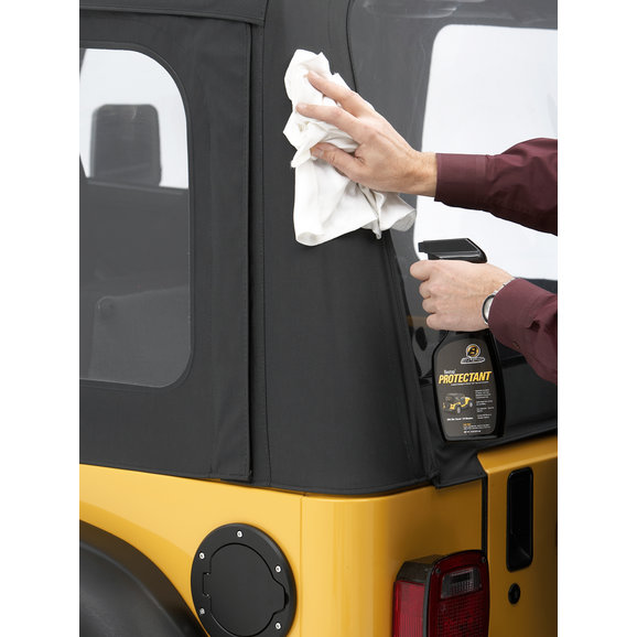 Bestop® Protectant specifically formulated for Bestop® soft tops, molded/soft accessories, exterior/interior vinyl. Bestop® Protectant safely repels dust, grease, dirt and mildew and is exclusively developed for complete protection against UV fading, cracking and hardening. This easy application spray on, wipe dry contains no silicone or petroleum solvents.