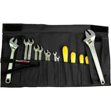 Made from heavy canvas with a reinforced bottom, this bag is equipped with two carry handles and a bag strap for mounting. Great for storing tools, jumper cables, towropes, and wrench roll-ups. Includes mounting hardware. Measures 17 long by 8 wide by 6 tall. Black only.
