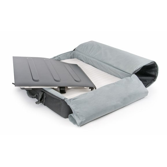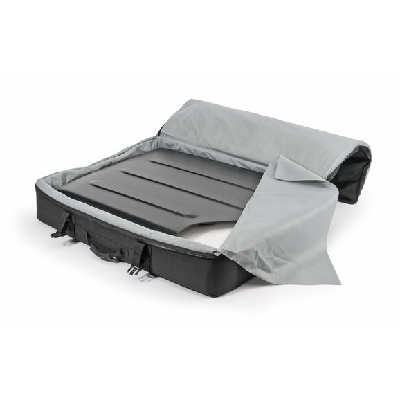 durable storage bags feature a soft inner liner to protect hard top panels from scratching when not in use on vehicle. Heavy duty zipper and closed cell foam construction provide rigidity and stiffness for extra protection. Conveniently stores behind rear seat for both 2 door and 4 door models. Bag is designed to lie flat in rear cargo area for 4 door Wranglers and upright on 2 door models.