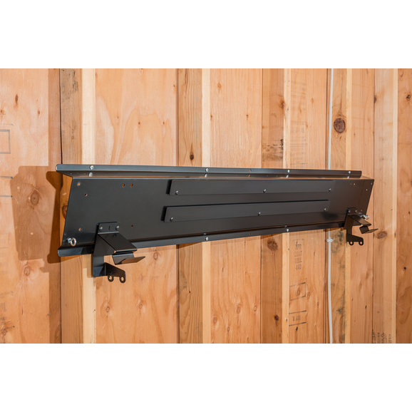Safe and convenient storage for original equipment soft tops. This exclusive design holds the metal bow assembly along with the fabric top and all three windows. All metal construction with black powder coat finish. Made in USA.