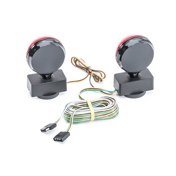 Towing with a tow bar requires that you have the appropriate lighting on the vehicle you are trailering. This simple and convenient kit is designed to provide you with quick visibility when moving broken-down or project vehicles with your rig. Features two magnetic lights that attach to metal surfaces on the vehicle in tow, the wiring to get from your Jeep® vehicle's wiring (see kit) to the temporary lights, and the handy snap-on lens and replaceable bulbs. Full instructions included.