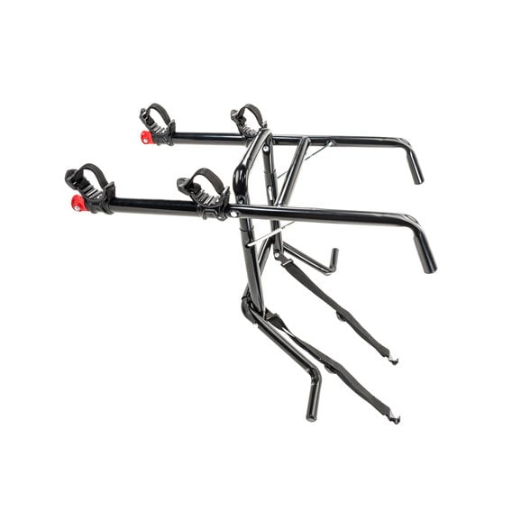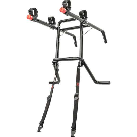 The Premium 2 Bike Spare Tire Mounted Bike Rack easily accommodates two bicycles (up to 70 lbs) with the 15 long carry arms. The narrow width on the carry arms are designed to work with a wide range of bicycle styles and frame sizes. Patented design carries bikes up high, away from road and hot exhaust, while the individual tie-downs cradles secure and protect bicycles. This updated design fits nearly all oversized spare tires, including those with over the tire third brake lights. Extra wide bottom foot supports weight on the rear tire not on the rim.