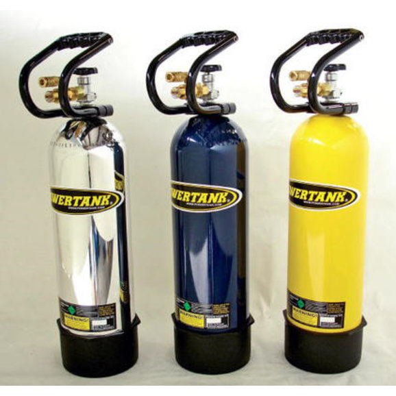 The Power Tank gives you the highest performance of any type of on-board air system on the market at any price. Our Power Tank air systems feature our patented Superflow HPX high performance CO2 regulators. Each SuperFlow HPX regulator pumps out an amazing 31 cfm flow rate (25% higher than 2004). No other CO2 system can match our performance, versatility, or our limited lifetime warranty. The PT-15 holds 50% more air than the PT-10. We recommend the PT-15 for 36"+ tires OR for those who would like to carry more air on the trail. The larger size allows you to air up and repair more tires between fills. Many customers consider the larger size also for extended air tool use. The added capacity is more economical since the fill cost is the same as filling the 10 lb. size. The photo shows the optional black tank boot at the base of the tank. This Tank is just 30" tall including the handle.