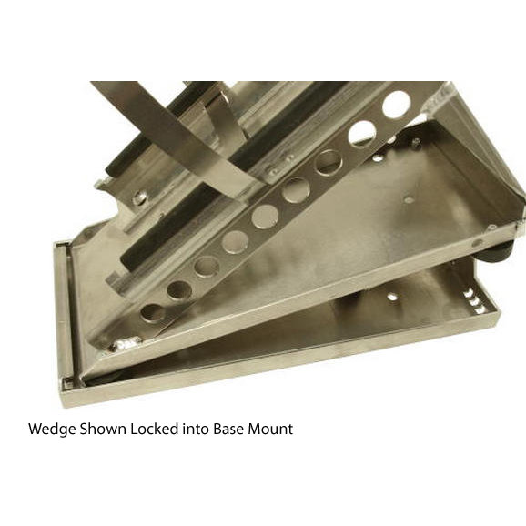 One of the neatest features of the Wedge Bracket is the optional Base Mount. Attach the Base Mount to the floor of your truck or the top of a tool box and now be able to quickly secure your Wedge Bracket in place. Once it's in you won't have to worry about it rolling around and getting banged up. To release the Wedge simple unlatch it and slide it out. The latch is lockable to deter curious passersby. Large drain holes allow dirt and water to escape. All aluminum construction.