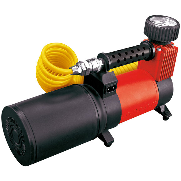 The HV-45 air compressor is a 12-volt unit that comes with a rechargeable battery. This unit powers from the rechargeable battery or directly from your car's cigarette lighter outlet. It is convenient, easy to use and perfect for motorcycle, ATV, Car, SUV and light truck use.