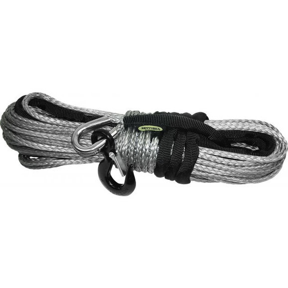 The all new Smittybilt synthetic winch rope is manufactured from Dyneema SK-75 which is lighter and stronger than the traditional steel cables plus it won't kink, curl or splinter. Each of our ropes is specially treated to be UV stable as well as heat treated. All of our ropes include a 10' protective sleeve; stainless steel thimble and safety hook with connector link which means it comes complete with nothing else to buy.