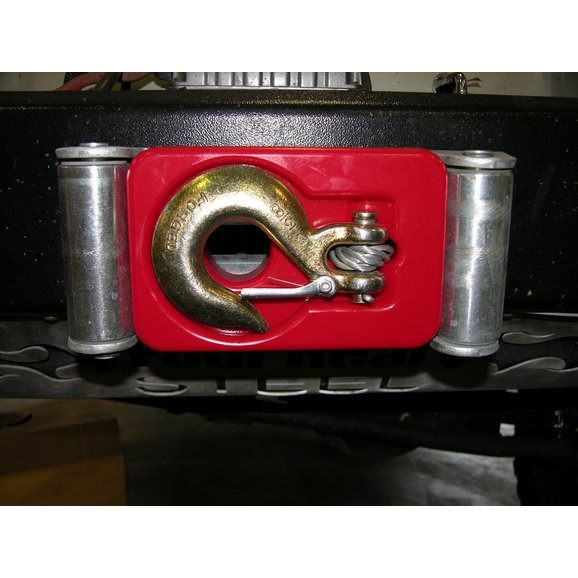 I like the look of the winch hook tucked into the isolator. This even worked fine with the Quadratec Roller Fairlead License Plate Mount. Just free spool our 1/2 and inch, clip on the plate holder and your set.