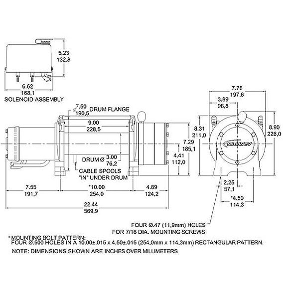 The Ramsey Patriot Profile Series combines the proven design of their Platinum and ProPlus series winches and takes it to the next level. The new Patriot Series consists of five models: 6000, 8000, 9000, 9500 and 12,000 lbs. The Patriot Profile Series is a high-performance winch for the off-roader who demands the best. The Patriot Series motors and solenoids are grounded directly to the battery. This eliminates poor grounding that can cause performance failures and damage to the winch. The Patriot Profile Series all have powerful 5.5 hp 12V DC motors for increased pulling power. The Patriot Series Winches are available with either a 12 ft. wire pendant remote or Ramsey's exclusive wireless remote. Features an automatic load-handling brake design for strength and reliability.