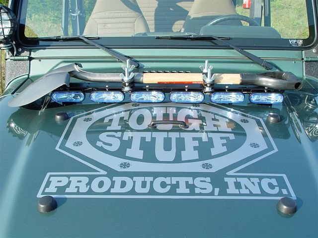The optional Light Kit includes six Optronics super white low profile 55-watt quartz-halogen driving lights with wiring harness, switches and relay. Light Kit mounts directly to the Tough Stuff® Hood Rack and will not interfere with mounted tools. Hood Rack and Light Kit sold separately.