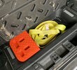 - The base holds your lug nut socket and wheel lock key (both are pinched in by the floor panel of the cubby, when it is closed).