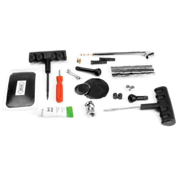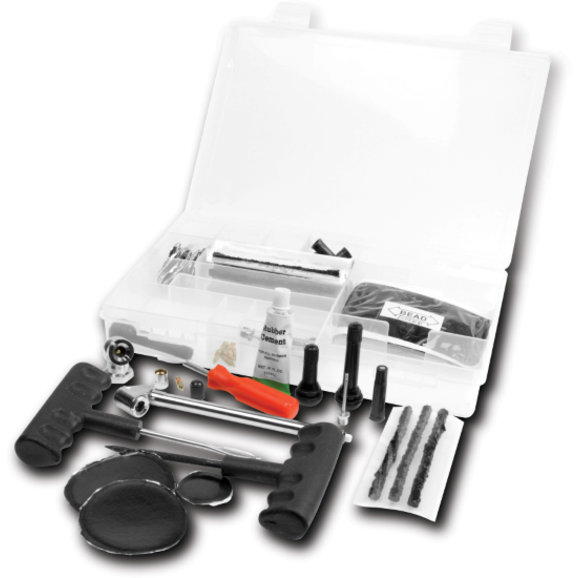 82 Piece tire repair and maintenance kit comes with everything you need to keep you on the road