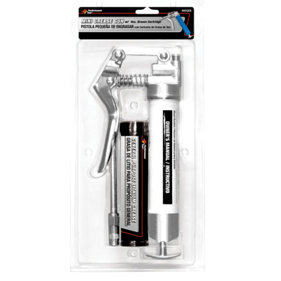 Heavy duty construction and chrome plated finish for long service life. "Pistol Grip Action" for easy use in tight spaces. Vented, zinc, die cast head cap. Positive lock for easy filling. Air bleeder valve eliminates air lock. Knurled think wall barrel for secure grip. Uses 3 oz. grease cartridge