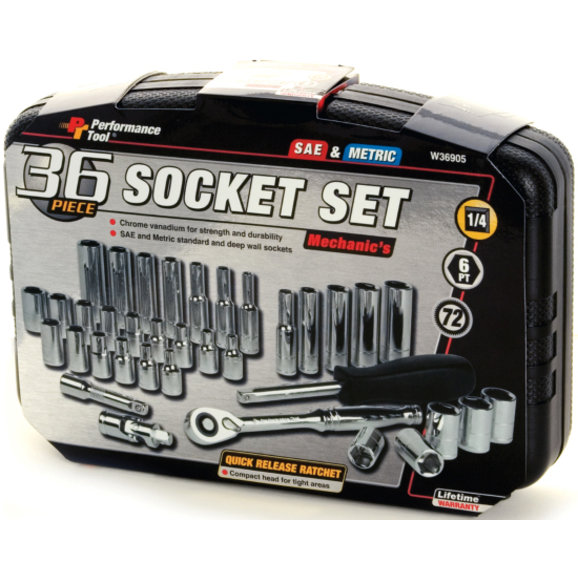 - 10pc standard MM socket sizes: 4, 5, 6, 7, 8, 9, 10, 11, 12 and 13mm.