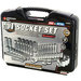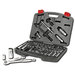 - Set contents: 1pc. 3/8" dr. quick release ratchet, 1pc. universal joint, 2pcs. 3 and 6" extensions, 2pcs spark plug sockets, 25pcs SAE and metric std. sockets and 20pcs. SAE and metric deep sockets.