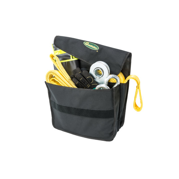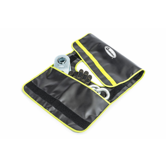 The Quadratec Winching Accessory Kit incorporates the basic recovery gear needed when performing common winching tasks. The heavy duty ballistic nylon tool storage bag has 4 big pockets to organize and store all of the included equipment. Kits includes a 2" x 8' long Tree Trunk Protector with a 30,000 lb rating; a 2" x 30' Recovery Strap with a 20,000 lb rating; pair of galvanized 3/4" D-ring shackles with a working load limit of 9500 lbs; a 20,000 lb capacity snatch block; heavy duty vinyl winch line dampener and size large mechanic style gloves. With our exclusive value pricing, there's no excuse to be without these winching essentials.