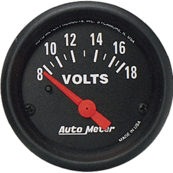 Black Faced 2-1/16 8-18 Volt Electrical Gauge.