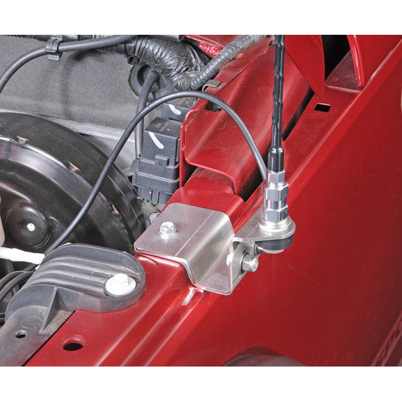 Stainless Steel Fender Mount CB Antenna Kit with 3 ft Super Flex  Antenna for 2007 & Up JK's.  The antenna is a custom wound antenna made by Firestik especially for Quadratec and the JK Wrangler. It is pre-tuned to exactly match the JK Wrangler fender location.  No tuning is necessary.  The antenna is super flexible so it will be harder to break on the trail.