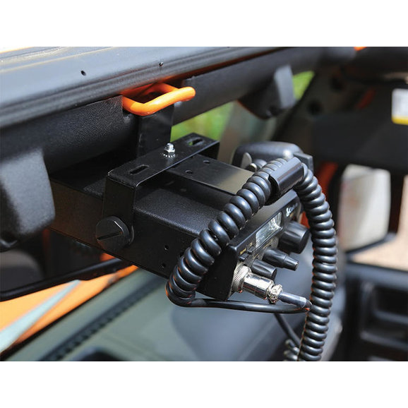 This CB Radio & Antenna Mount Kit offers you everything you need for an easy to install solution all in an accessible area. The CB radio mount conveniently mounts over the rearview mirror for easy reach and provides a hidden mounting point for your CB. The antenna mount is quickly installed on the factory spare tire carrier. It includes mounting hardware. Both brackets are made from black powder coated steel.