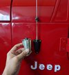No need to drill 3 more holes in your Jeep. It’s a 1/2 inch extra fine thread type nut on the back side, like the kind you find on a gun barrel. It’s worth it, about ten bucks.