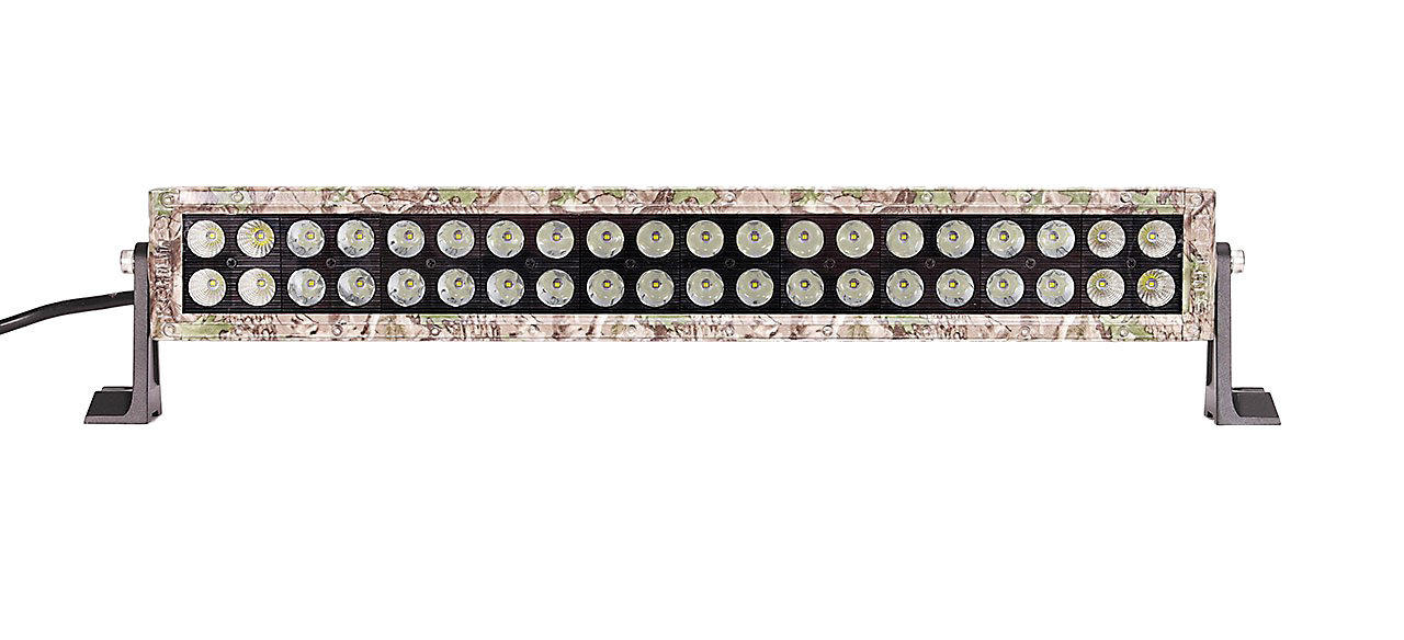 KC's 20" C20 Camo C-Series LED light bar features a camouflage outer pattern for optimal concealment while producing a versatile and bright combo beam pattern. The 20" Camouflage C-Series uses an advanced dual row CREE LED design delivering 10,800 Lumens of output with maximum power efficiency. Perfect for hood, front bumper, windshield and grille applications providing balanced light illumination. The C-Series light bar features an extruded aluminum housing, aluminum core PCBs with thermal management and lexan lenses. What you get is a perfect balance of affordable performance with maximum efficiency. Off road race tested, the C-Series was designed to handle the harsh environments. Featuring a IP67 rated housing and GORE® Membranes, the C-Series is resistant to moisture and dust.