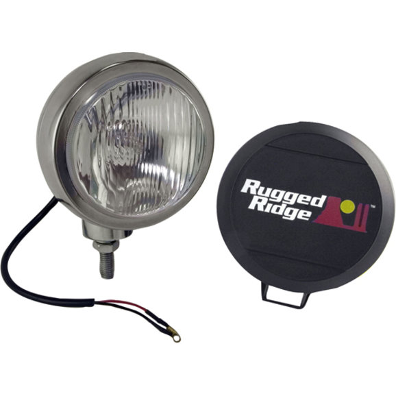 Rugged Ridge HID Off Road Lighting takes off road lighting to the next level! We mated the brilliance of High Intensity Discharge bulbs with the rugged construction of our traditional halogen off road lights. The result is more efficient and powerful beam better capable of illuminating the night sky. HID lights are 2-1/2 times more powerful than halogen lights and draw 60% less current than a standard 100W fog light. Our 6" and 5" HID Lights are constructed with heavy-duty stamped steel housings, and are available in corrosion resistant black or stainless steel finish. Rugged Ridge lights feature waterproof connections, internal ballast, and a reinforced multi-directional mounting base. The lights are available individually or in kits containing pre-terminated wiring harness, relay, impact resistant stone guards and illuminated dash switch. Studies have demonstrated drivers react faster and more accurately to obstacles with HID lighting rather than halogen ones. So, upgrade your lighting today! Features 12V 35W 4200K HID Bulbs (2 1/2 times more powerful than halogen bulbs), internal ballast, waterproof connections, reinforced multi-directional mounting base, includes pre-terminated wiring harness & illuminated dash switch., and the 5" & 6" lights are available in polished stainless steel or black steel finish. Draws 60% less current than a standard 100W fog light, has an average life of an 2000 hours, compared to 500-1000 hours for a halogen unit. All HID Lights include impact resistant stone guard.