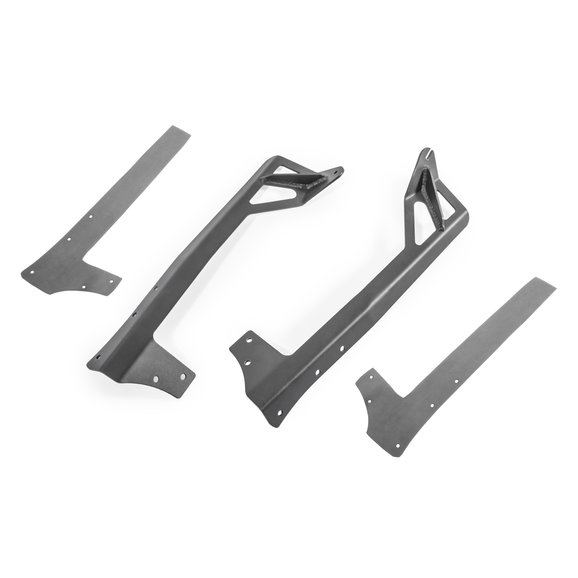 These upper windshield or A-pillar brackets from Rigid Industries are specifically designed to mount to your Jeep® JK without drilling or modifying your A-pillar. These brackets will allow you to install Rigid Industries' iconic 50" E-Series or SR-Series light bar above your windshield giving you unprecedented visibility and aggressive styling. Brackets are made from high strength 3/16" mild steel and come with a Satin Black powder-coat finish to match your new light bar. This kit also includes rubber gaskets to keep the brackets from damaging your paint. Light sold separately.