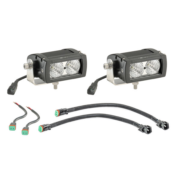 Replace your factory fog lamps with a Quadratec's exclusive LED light kit that combines the industry-leading power of 10W American made Cree LEDs into compact housings. With such an efficient low current draw, our kits are designed to use the existing factory fog lamp harness and control. These truly plug-n-play kits provide a quick and easy installation of auxiliary off road lighting with no additional wiring, cutting or spicing. Our kits include one pair of auxiliary off road lamps and custom plug-n-play harnesses that plug directly into your existing factory fog lamp harness. Each lamp includes a 6 long extension with industry-standard Deutsch-style and Mopar compatible connectors to allow for lamp relocation. Each LED exhibits super bright white 6000°K output that's close to natural sunshine. The durable, powder-coated aluminum housings are built to endure aggressive off-road use and feature stainless steel hardware and mounting posts. Available with choice of 10°driving beam or 30° flood beam patterns. The 10° narrow beam is best suited for driving at higher speeds that require longer projection with less peripheral lighting. The 30° flood beam pattern provides more peripheral lighting and is well suited as a multi-purpose light and for off road trail riding at lower speeds. Includes Quadratec's 3 Year Limited Warranty. Lamps are not legal for use on public roadways and are intended only for off-road use.