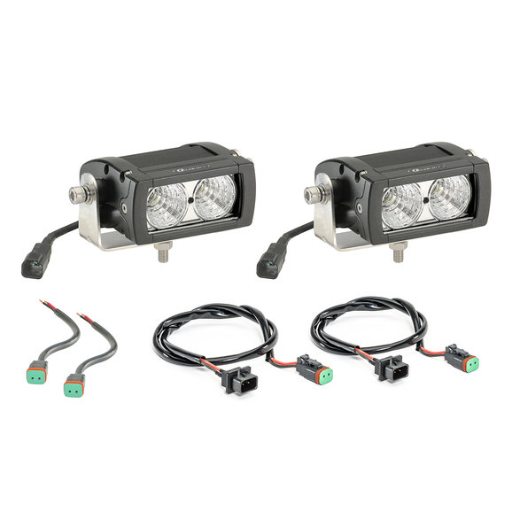 Quadratec's exclusive LED light kit that combines the industry-leading power of 10W American made Cree LEDs into compact housings. With such an efficient low current draw, our kits are designed to use the existing factory fog lamp harness and control. These truly plug-n-play kits provide a quick and easy installation of auxiliary off road lighting with no additional wiring, cutting or spicing. Our kits include one pair of auxiliary off road lamps and custom plug-n-play harnesses that plug directly into your existing factory fog lamp harness. Each lamp includes a 24 long extension with industry-standard Deutsch-style and Mopar compatible connectors to allow for lamp relocation. Each LED exhibits super bright white 6000°K output that's close to natural sunshine. The durable, powder-coated aluminum housings are built to endure aggressive off-road use and feature stainless steel hardware and mounting posts. Available with choice of 10°driving beam or 30° flood beam patterns. The 10° narrow beam is best suited for driving at higher speeds that require longer projection with less peripheral lighting. The 30° flood beam pattern provides more peripheral lighting and is well suited as a multi-purpose light and for off road trail riding at lower speeds. Includes Quadratec's 3 Year Limited Warranty. Lamps are not legal for use on public roadways and are intended only for off-road use.