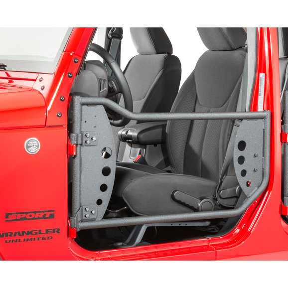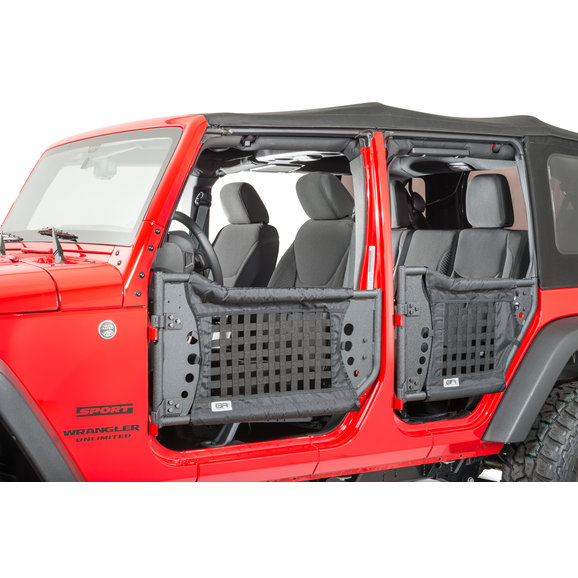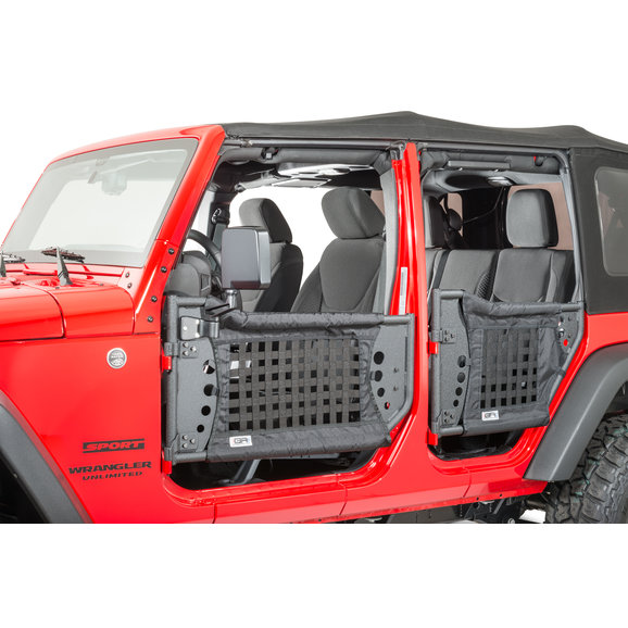 The New Body Armor Trail Doors are a Steel tube construction with durable black textured powder coat finish. Featuring an Exclusive hidden internal latch mechanism designed for secure closure. Steel plate gussets for style and strength. Simple installation, just take your factory doors off and slide the trail doors into the factory hinge, No need to modify the latch post. Complete with strong 1" wide, 1/8" thick woven nylon web door inserts for added protection from trail debris, comes with additional padding for comfort. Will Not accept OE Mirrors