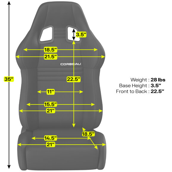 Infinite recline: The fingertip controlled reclining mechanism allows the seat back to be adjusted to the ultimate driving position. Corbeau reclining technology allows with just the lift of the lever, the seat back to be immediately returned to the full upright position.