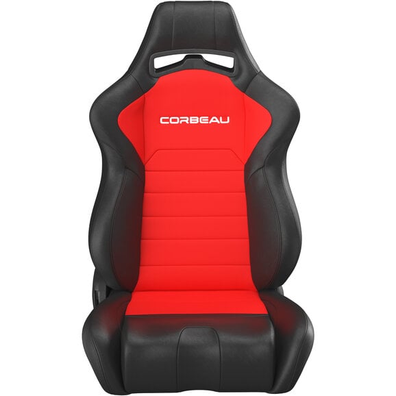Corbeau's LG1 racing seat pair is a supreme leader in comfort with unique race inspired contours for a snug secure feel. While the LG1 seats are designed with competition in mind, the comfort from the form of this infinitely reclining seat, translates well to the daily driver's needs. The sleek styled contour areas make for a fairly thin seat base, when leg room under the steering wheel is a concern. LG1 seats do require Corbeau ground up seat brackets, which are available for Jeep CJ, Wrangler YJ, TJ, JK, JKU models. Corbeau has generally found from consumers that the LG1 will fit up to a 38-inch waist, while the also available LG1 Wide will fit up to a 42-inch waist. The injection molded foam cushion includes high wear patches, strategically placed to protect your seat abuse to critical high wear areas. LG1 racing seat Cloth models are trimmed with leatherette wear patches in. Microsuede models have 100% black leather trim high wear patches. The LG1 seat pair is available with Seat Heaters and inflatable lumbar support or both popular options installed by Corbeau.