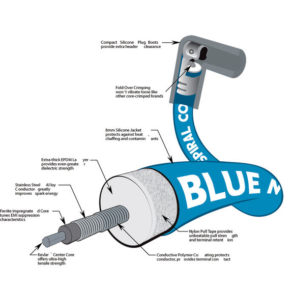 We've taken our race-proven Blue Max 8mm Spiral Core Wire and packaged it in pre-terminated sets for most popular applications. This is the very same wire used by professional racers and engine builders to deliver maximum spark energy and provide the greatest protection against electro-magnetic interference (EMI). The result is superior ignition performance and excellent sound quality from your car's audio system.