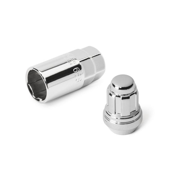 Nothing finishes off a set of wheels like a fresh set of lug nuts. The Lynx quality kits are value priced and hard to resist under any budget. Acorn style kits include 18 Classic Acorn Style Lug Nuts, 5 Anti-Theft Wheel Locks with keyed socket to finish all four road wheels and the spare. Available in durable chrome and black finishes. Our lug nuts have the correct 60° tapered seat to work with all factory and aftermarket steel and aluminum wheels for Jeep. Threads are ½" x 20 (threads per inch) per original equipment.