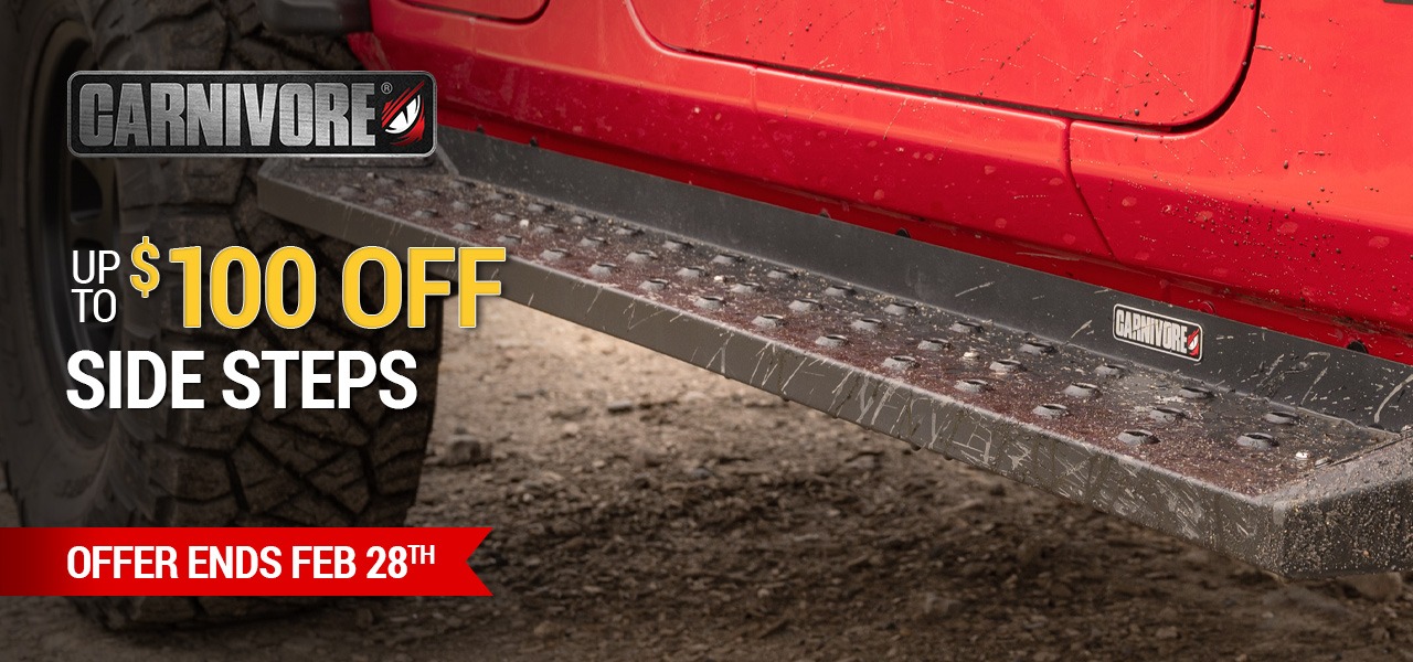 Up to $100 OFF Carnivore Side Steps. Offer valid on select Carnivore purchases made from FEB 12- FEB 28, 2026.