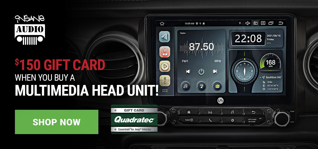 Purchase a qualifying Insane Audio multimedia head unit and receive a $150 Quadratec gift card. Offer valid on select Insane Audio purchases made from MAY 01 - MAY 31, 2023.