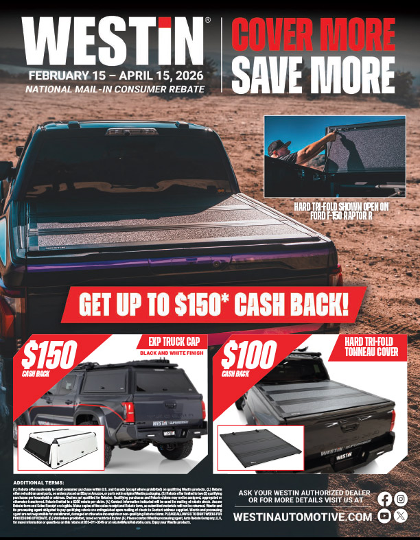 Get up to $150 Back on Westin Truck Bed Covers. Offer valid on select Westin purchases made from FEB 15- APR 15, 2026.