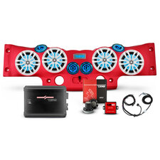 DS18 Overhead Soundbar Package - Red Soundbar with Black Speakers with Metal Grille for 07-18 Jeep Wrangler JK In Stock $2,597.70