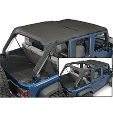 Maybe you are out to change the look of your vehicle, and if so, frameless soft tops and 'summer style' tops are a great options. Frameless tops eliminate all hardware and instead utilize door surround channels and a rail system to help attach the top to your JK, while employing a popular sloping fastback look that definitely stands out. Summer style tops are ones that employ a bikini top, windbreaker, and tonneau cover to seal up the cabin - mainly for the summer months. This also is a great solution for those who have a hard top and wish to remove it for the summer.