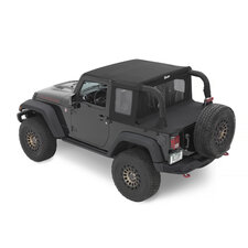 Maybe you are out to change the look of your vehicle, and if so, frameless soft tops and 'summer style' tops are a great options. Frameless tops eliminate all hardware and instead utilize door surround channels and a rail system to help attach the top to your JK, while employing a popular sloping fastback look that definitely stands out. Summer style tops are ones that employ a bikini top, windbreaker, and tonneau cover to seal up the cabin - mainly for the summer months. This also is a great solution for those who have a hard top and wish to remove it for the summer.